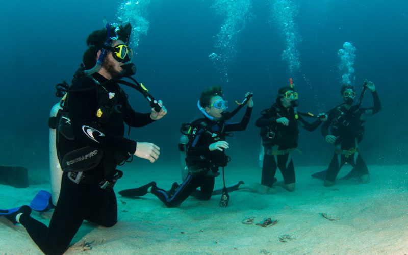 An Open Water course consists of 2 days classroom theory and confined water (pool) practice, before you take your 4 open water training dives to become certified.