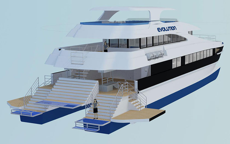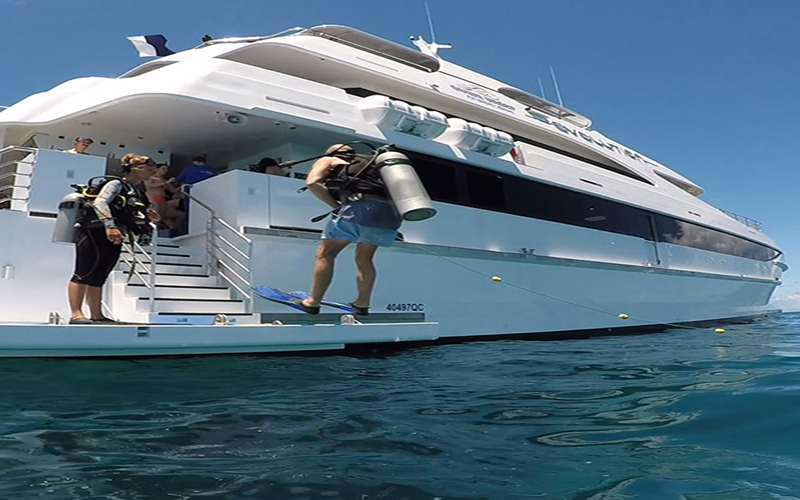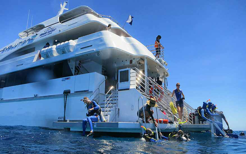 “Evolution”, operated by Down Under Cruise and Dive, is an ultra-modern, high-speed, reef day tour boat, that arrived in Cairns in 2015. The three-level, custom-designed and built catamaran takes up to 140 people but has tons of room and options for private saloon areas. 5 hours at 2 spectacular locations with up to 3 dives and snorkel times available.